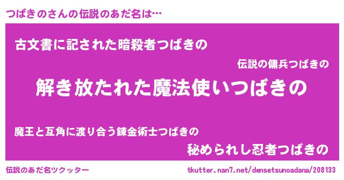 | ヒーロー風カッコイイあだ名 | 『幻影騎士ツバ』『ネオツバキノ』 |