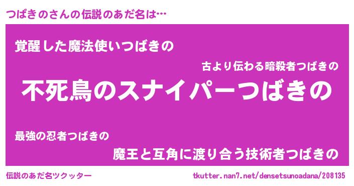 | ヒーロー風カッコイイあだ名 | 『スーパーツバキノ』『幻影騎士ツバ』 |