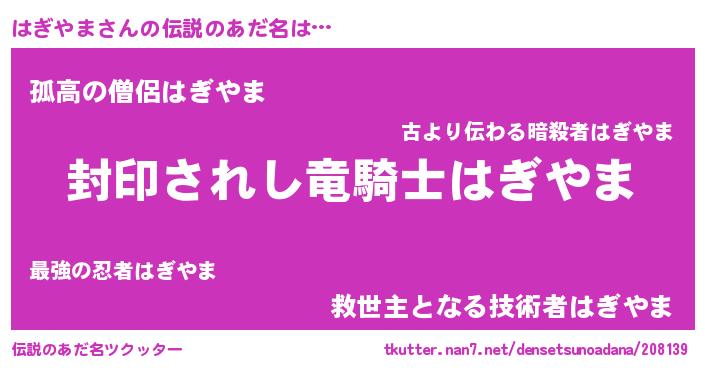 | ヒーロー風カッコイイあだ名 | 『スーパーハギヤマ』『暗黒騎士ハギ』 |