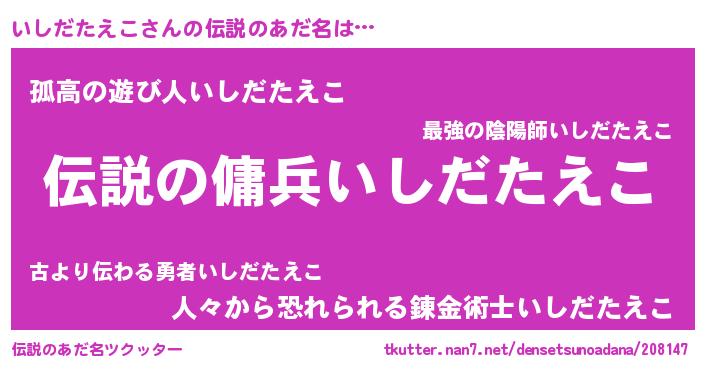 | ヒーロー風カッコイイあだ名 | 『スーパーイシダタエコ』『天弓騎士イシ』 |