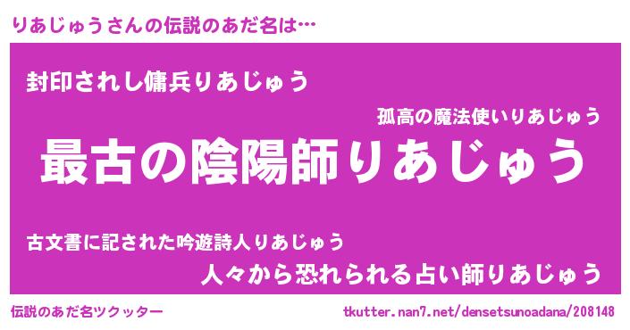 | ファンタジー風あだ名 | 『エターナルリアジュウー』『リアフェル』 |