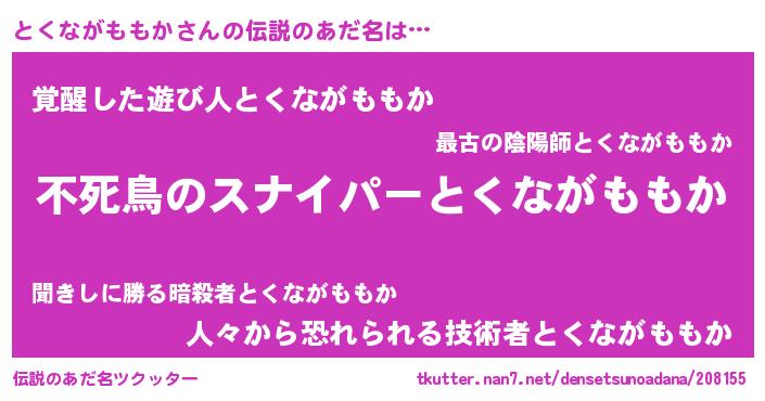 | 胡散臭い通販商品みたいなあだ名 | 『モテモテ間違いなし霊験あらたかなお札…その名も「とくながももか」』 |