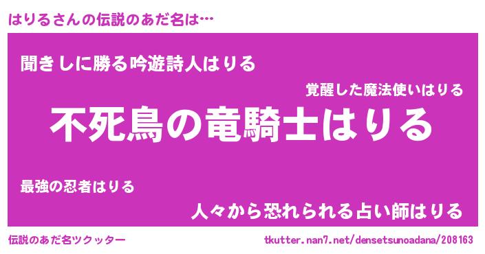 | ヘコむあだ名 | 『はりにー』『はりる(遠い目)』 |
