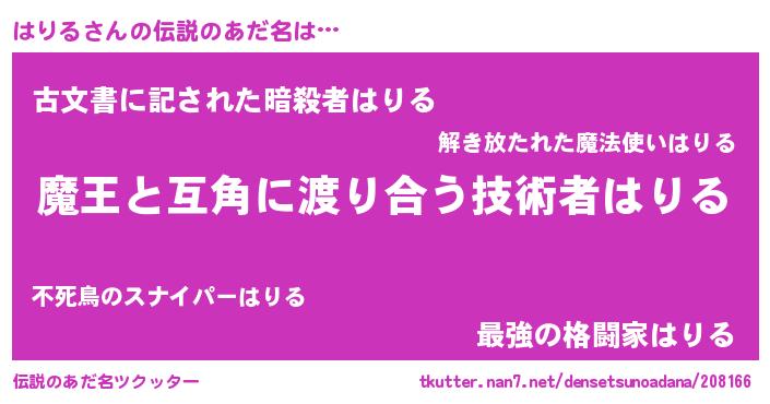 | ヒーロー風カッコイイあだ名 | 『愛の使者はりる』『ネオハリル』 |