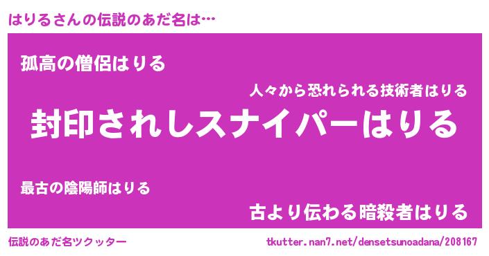 | 胡散臭い通販商品みたいなあだ名 | 『億万長者になれる霊験あらたかなお札…その名も「はりる」』 |