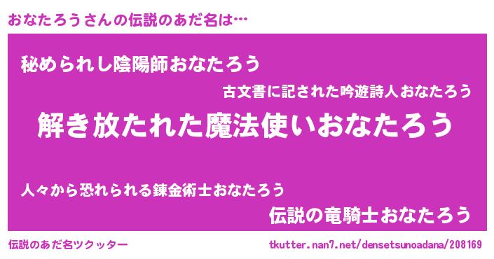 | 胡散臭い通販商品みたいなあだ名 | 『伝統あるサプリメント…その名も「おなたろう」』 |