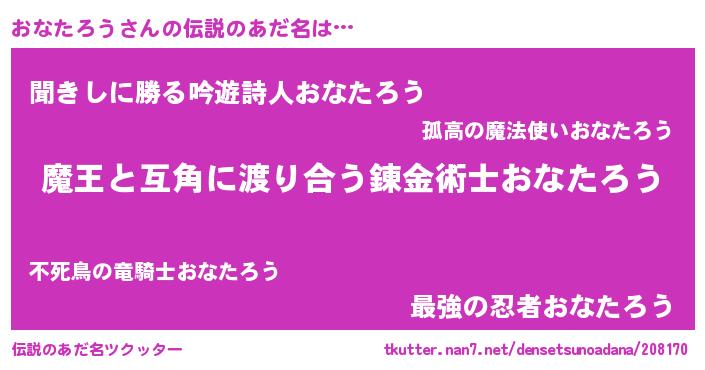 | 意味不明あだ名 | 『住所不定無職おなたろう(95歳)』 |