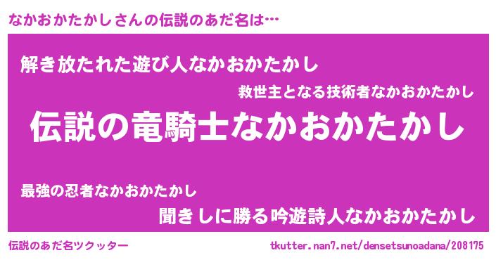 | ヒーロー風カッコイイあだ名 | 『スーパーナカオカタカシ』 |