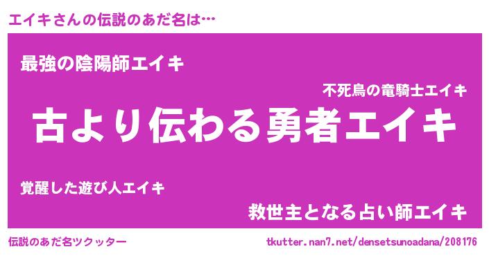 | 胡散臭い通販商品みたいなあだ名 | 『来世でも幸せになれる水素水…その名も「エイキ」』 |