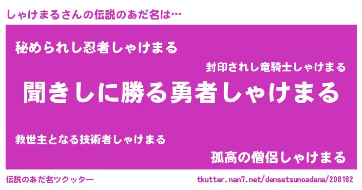 | ヒーロー風カッコイイあだ名 | 『ネオシャケマル』『黄金騎士シャ』 |