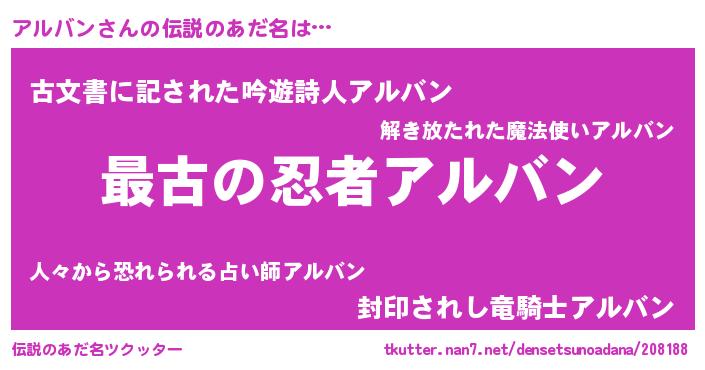 | 意味不明あだ名 | 『アルバンフォーエバー』『自称アルバン』 |