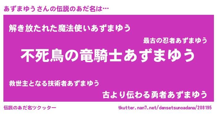 | ヒーロー風カッコイイあだ名 | 『仮面アズダー』『スーパーアズマユウ』 |
