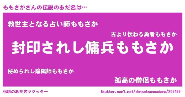 | 意味不明あだ名 | 『ペロリンももさか』『自称ももさか』 |