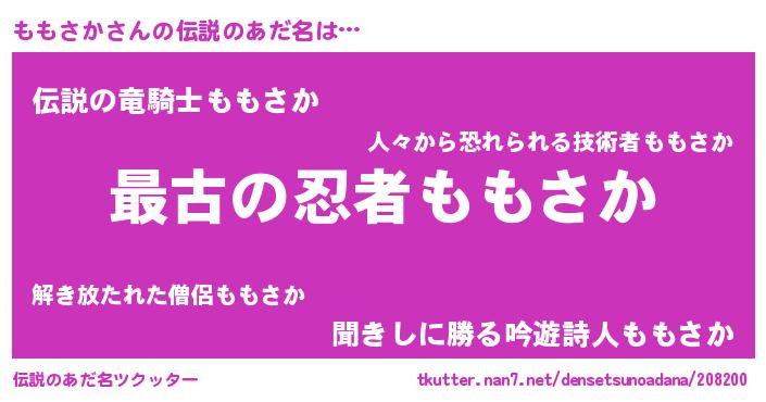 | 意味不明あだ名 | 『ももさかフォーエバー』『自称ももさか』 |