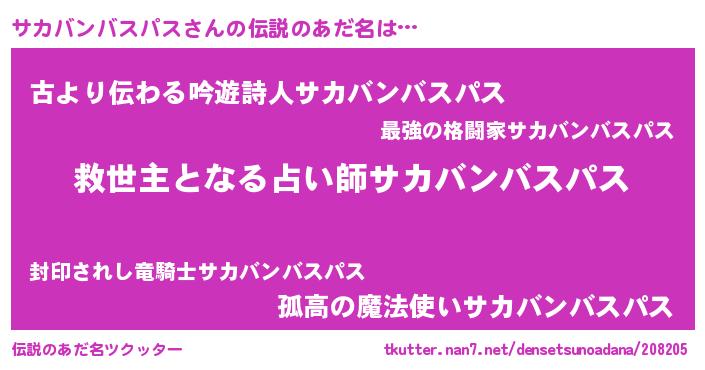 | 欧米人風あだ名 | 『ダニエルサカバンバスパス』 |