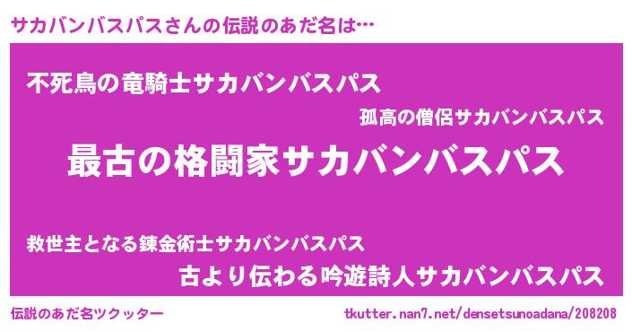 | 意味不明あだ名 | 『住所不定無職サカバンバスパス(6歳)』 |