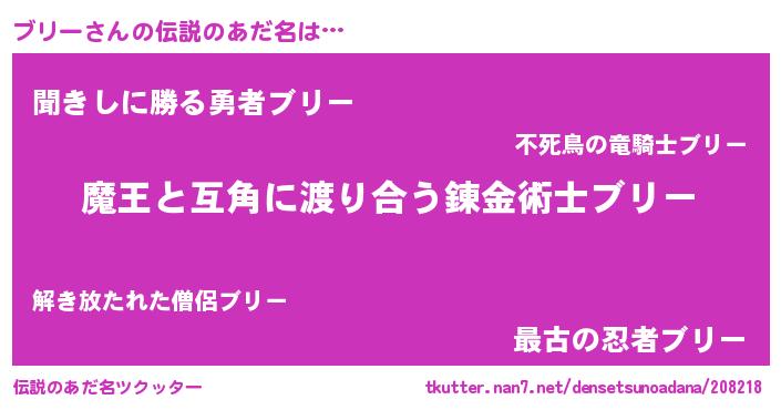 | ヘコむあだ名 | 『ブリー(震え声)』『酢こんぶ』 |