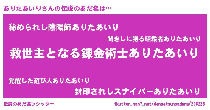 | 胡散臭い通販商品みたいなあだ名 | 『モンドセレクションを受賞した隕石のかけら…その名も「ありたあいり」』 |