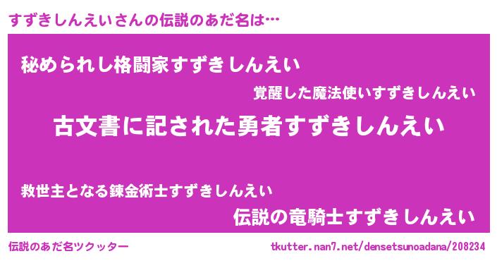 | 意味不明あだ名 | 『住所不定無職すずきしんえい(89歳)』 |