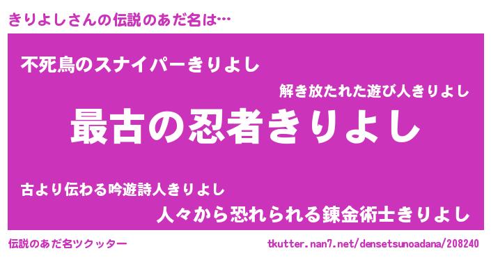 | 意味不明あだ名 | 『きりよしフォーエバー』『自称きりよし』 |