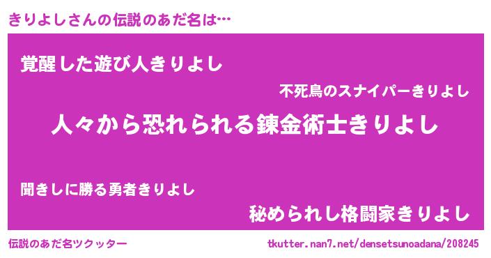 | 男性向けラノベタイトル風あだ名 | 『キリヨシスレイヤー』 |