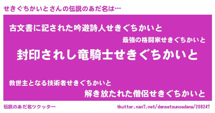 | 肩書あだ名 | 『せきぐちかいと閣下』 |