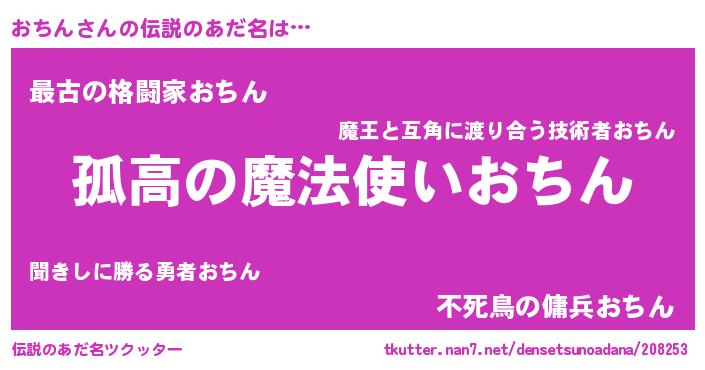 | 男性向けラノベタイトル風あだ名 | 『魔弾の王とおちん』 |