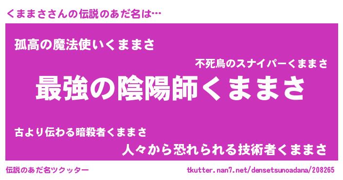 | 男性向けラノベタイトル風あだ名 | 『この素晴らしい世界にくままさを!』 |