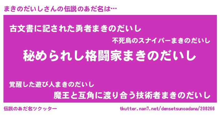 | 意味不明あだ名 | 『住所不定無職まきのだいし(5歳)』 |