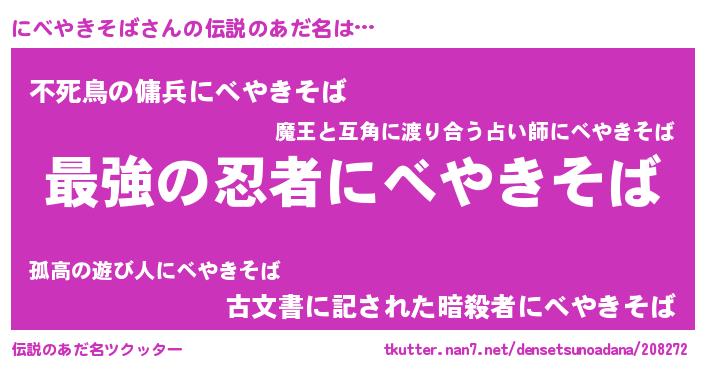 | 意味不明あだ名 | 『にべやきそばフォーエバー』 |