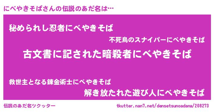 | 胡散臭い通販商品みたいなあだ名 | 『前代未聞の健康食品…その名も「にべやきそば」』 |