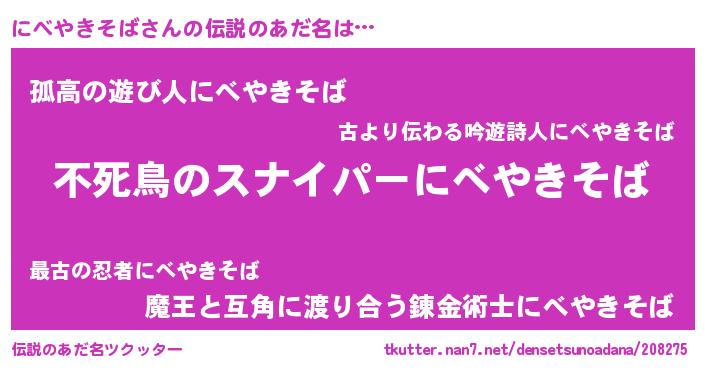 | 胡散臭い通販商品みたいなあだ名 | 『モテモテ間違いなし霊験あらたかなお札…その名も「にべやきそば」』 |