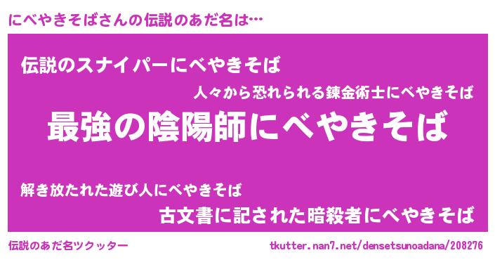 | 欧米人風あだ名 | 『にべやきそばクリステル』 |