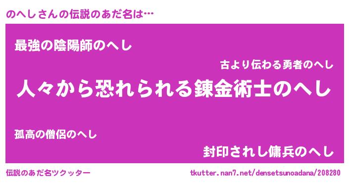 | 意味不明あだ名 | 『めかぶ科のへし属』『自称のへし』 |