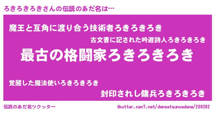 | 女子向けラノベタイトル風あだ名 | 『乙女ゲームの破滅フラグしかない悪役ろきろきろきに転生してしまった…』 |