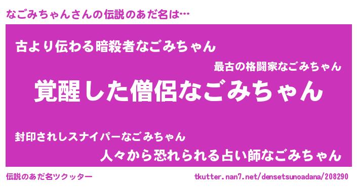 | ポケモン風あだ名 | 『ナゴゴンZ』『ヒナゴミチャン』 |