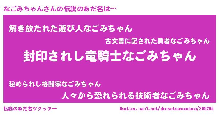 | 男性向けラノベタイトル風あだ名 | 『ナゴミチャンアートオンライン』 |