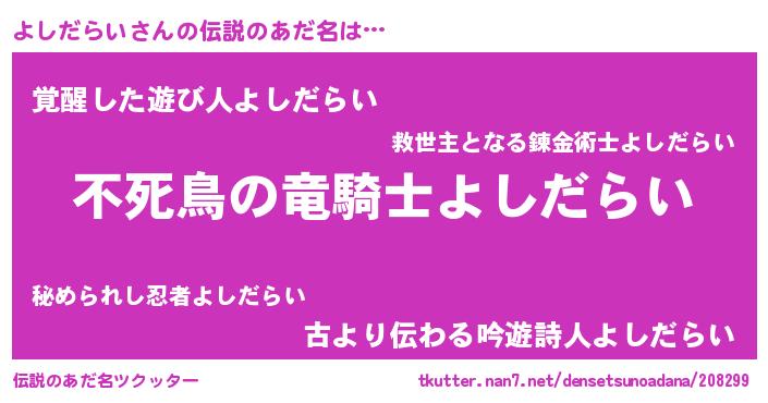 | 女子向けラノベタイトル風あだ名 | 『よしだらい姫と円卓の騎士』 |