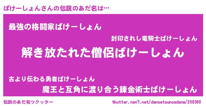 | ヒーロー風カッコイイあだ名 | 『仮面バケダー』『炎刃騎士バケ』 |