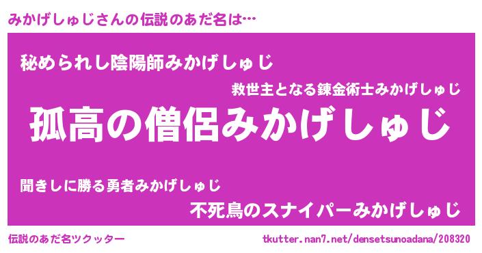 | 意味不明あだ名 | 『自称みかげしゅじ』 |