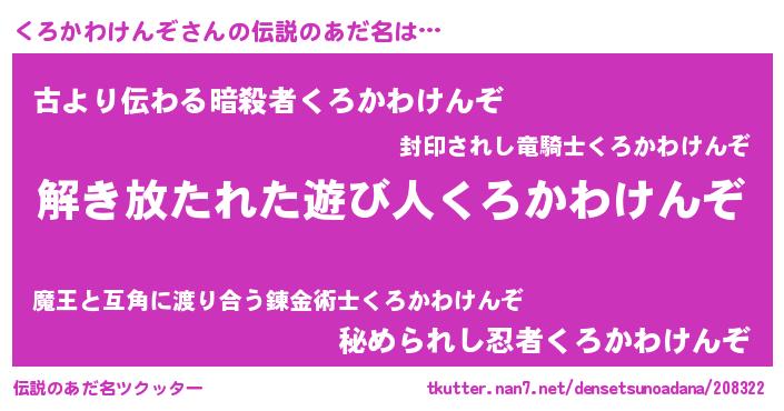 | 意味不明あだ名 | 『とにかく怪しいくろかわけんぞ』 |