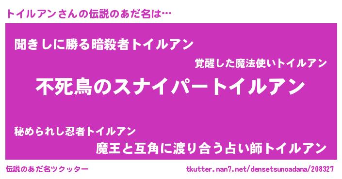 | 女子向けラノベタイトル風あだ名 | 『トイルアン姫と円卓の騎士』 |