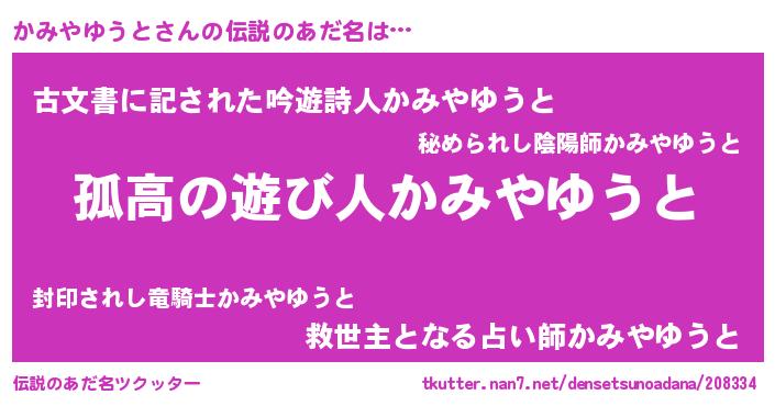 | 男性向けラノベタイトル風あだ名 | 『ダンジョンにかみやゆうとを求めるのは間違っているだろうか』 |