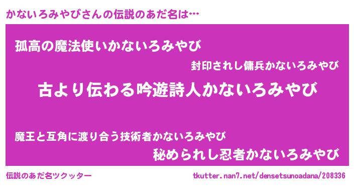 | 意味不明あだ名 | 『自称かないろみやび』 |