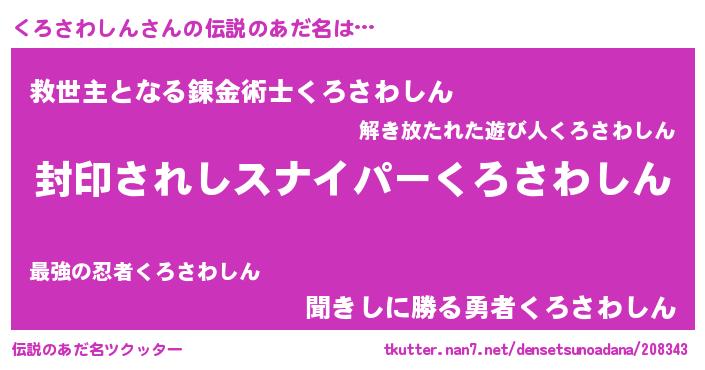 | 肩書あだ名 | 『くろさわしん御曹司』 |