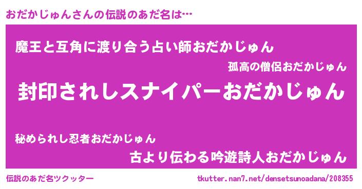 | ヘコむあだ名 | 『おだっふぃ~』『おだかじゅん(笑)』 |