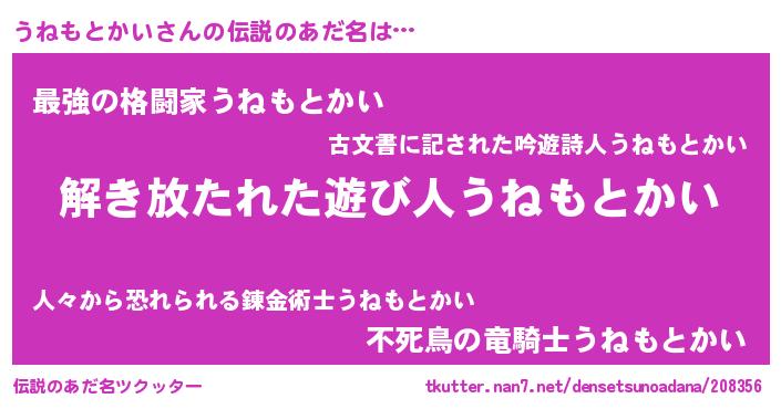 | ポケモン風あだ名 | 『ウネキング』『ヒウネモトカイ』 |