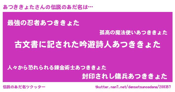 | 意味不明あだ名 | 『永久保存あつききょた』 |