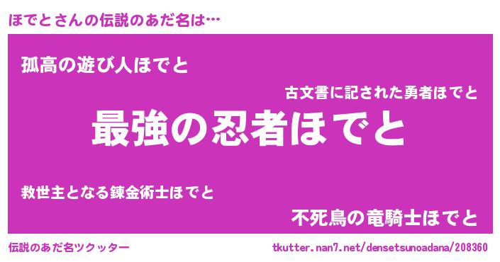 | ファンタジー風あだ名 | 『エターナルホデトー』『ホデフェル』 |