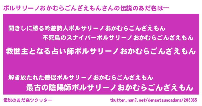 | 胡散臭い通販商品みたいなあだ名 | 『モンドセレクションを受賞したイリジウム磁石…その名も「ボルサリーノおかむらごんざえもん」』 |
